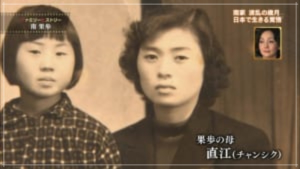 방송 자막에 어머니 이름이 창식 <チャンシク(直江)> 으로 표시되어 있다. 한자는 직강인데 일본 이름인듯