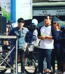 지난 5월 6일 홍대 걷고싶은 거리에서 열린 문재인 대선후보 프리허그 이벤트 행사장에서 낯익은 탁현민의 얼굴이 보여 촬영한 것이다.