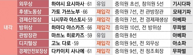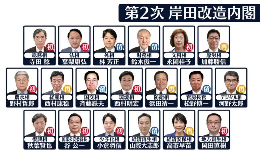 8월 10일 기시다 후미오 일본 총리가 각료 19명중 14명을 교체하는 개각을 단행했다. (内閣改造)