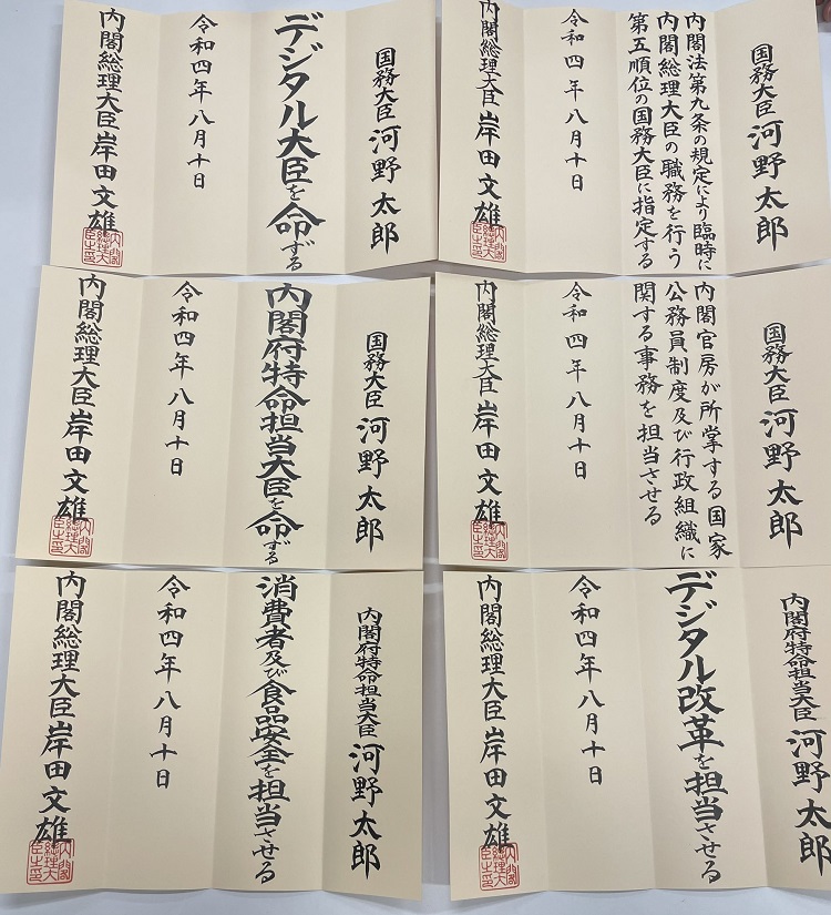 ちなみにこの辞令を書くための墨をすった人は、以前ワクチン担当大臣だった時に私のスタッフだった。