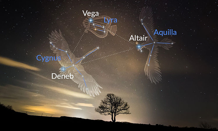 백조자리(白鳥座, Cygnus)의 데네브(Deneb), 독수리자리의 알타이르, 거문고자리의 베가로 이뤄지는 삼각형 모양의 성군(星群, Asterism)이다.