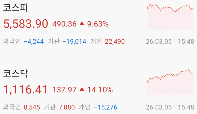 증플 2026년 3월 5일(목) 주식시장 장마감 증시 요약